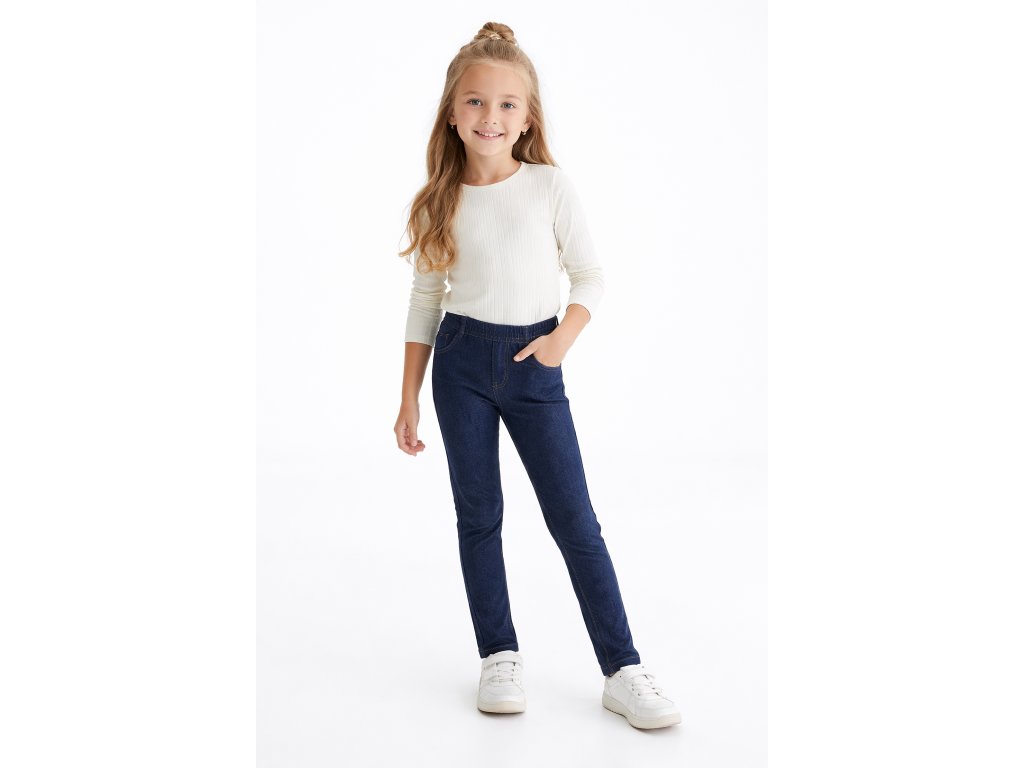 Pohodlné dievčenské legíny v džínovom vzhľade, mierne zateplené ideálne na prechodné obdobia.