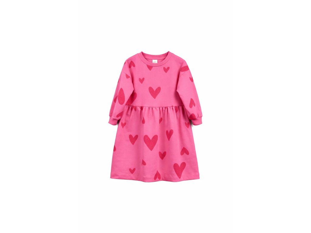 Štýlové bavlnené šaty s jemným vzorom srdiečok, navrhnuté pre pohodlie a voľnosť pohybu počas celého dňa. Mäkký a elastický úplet je príjemný na dotyk a prispôsobí sa detskej postave bez obmedzovania pri hre či bežných aktivitách.